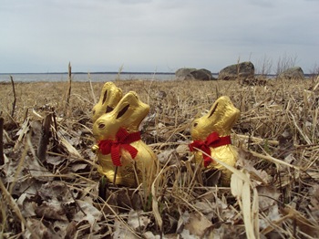 Idag grillade jag för första gången i år. Jag och Johanna och Josefin från klassen tog oss ut på Ekudden vid Vänerns strand. Det var kallt och dant, men vi hade trevligt ändå. Vi hade köpt varsin påskreakanin som fick njuta av horisonten innan de kläddes av och åts upp. Innan dess hade jag grillat falukorv och ätit chips. Jag älskar nyttig mat.